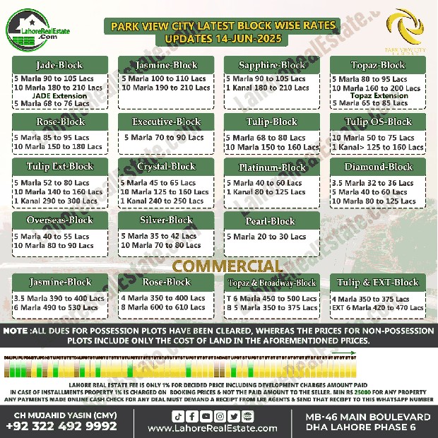 Park View City Lahore Plot Prices Blockwise Rates June 16, 2025
