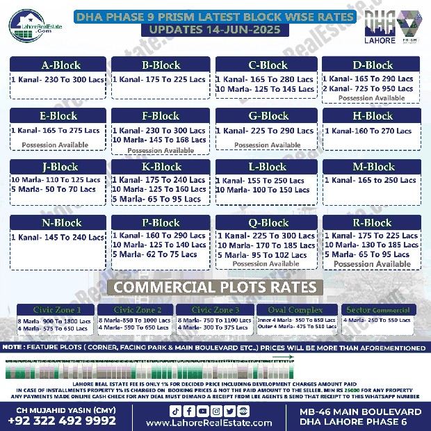 DHA Lahore Phase 9 Prism File Rates Update