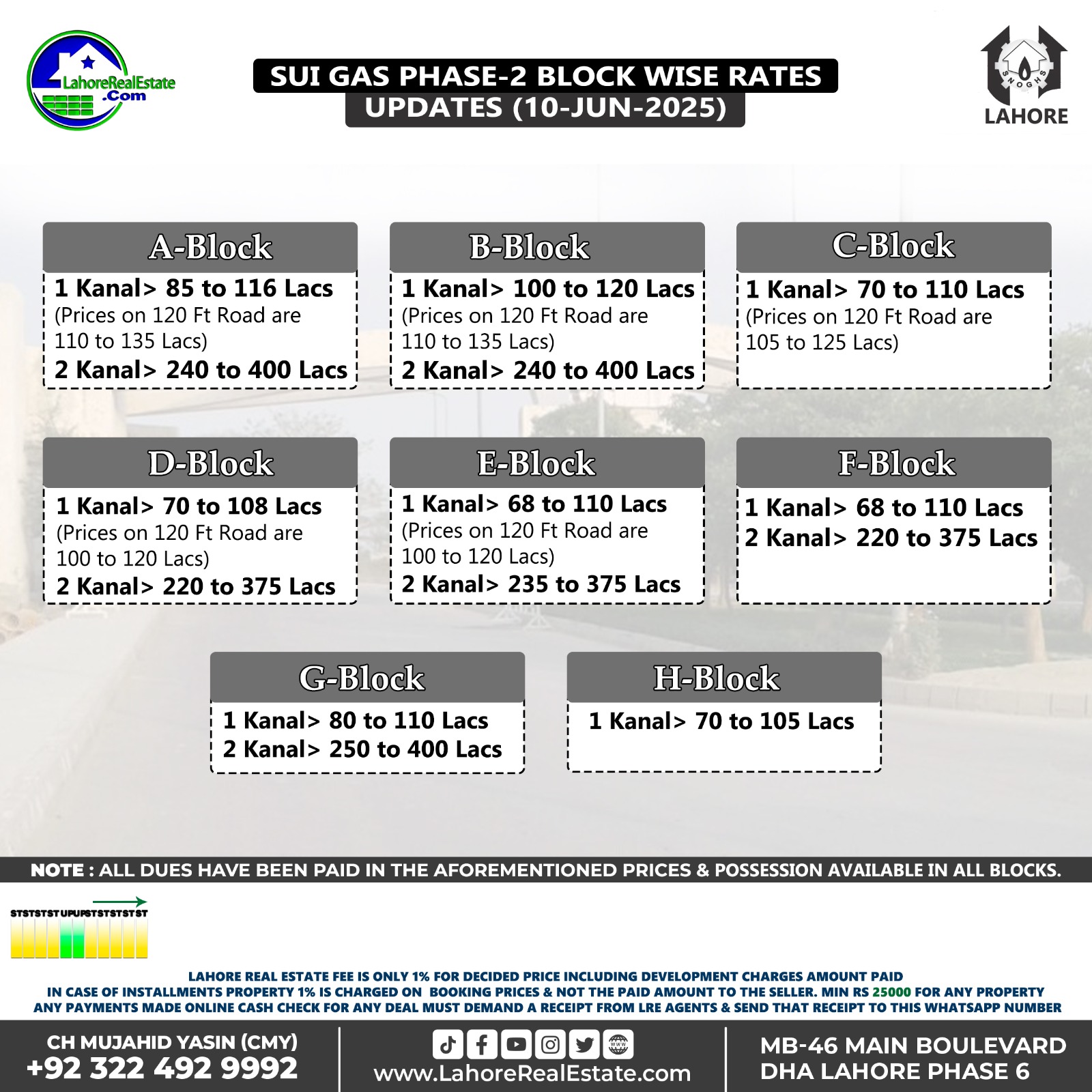 Sui Gas Phase-2 Lahore Plot Prices Blockwise Rates June 11, 2025