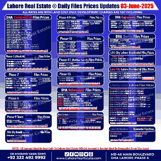 Disclaimer: This update reflects the current market status as of June 03, 2025. File rates can fluctuate. We recommend consulting with Lahore Real Estate ® for the most recent information and expert guidance tailored to your specific investment goals.