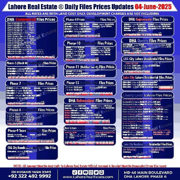 Disclaimer: This update reflects the current market status as of June 04, 2025. File rates can fluctuate. We recommend consulting with Lahore Real Estate ® for the most recent information and expert guidance tailored to your specific investment goals.