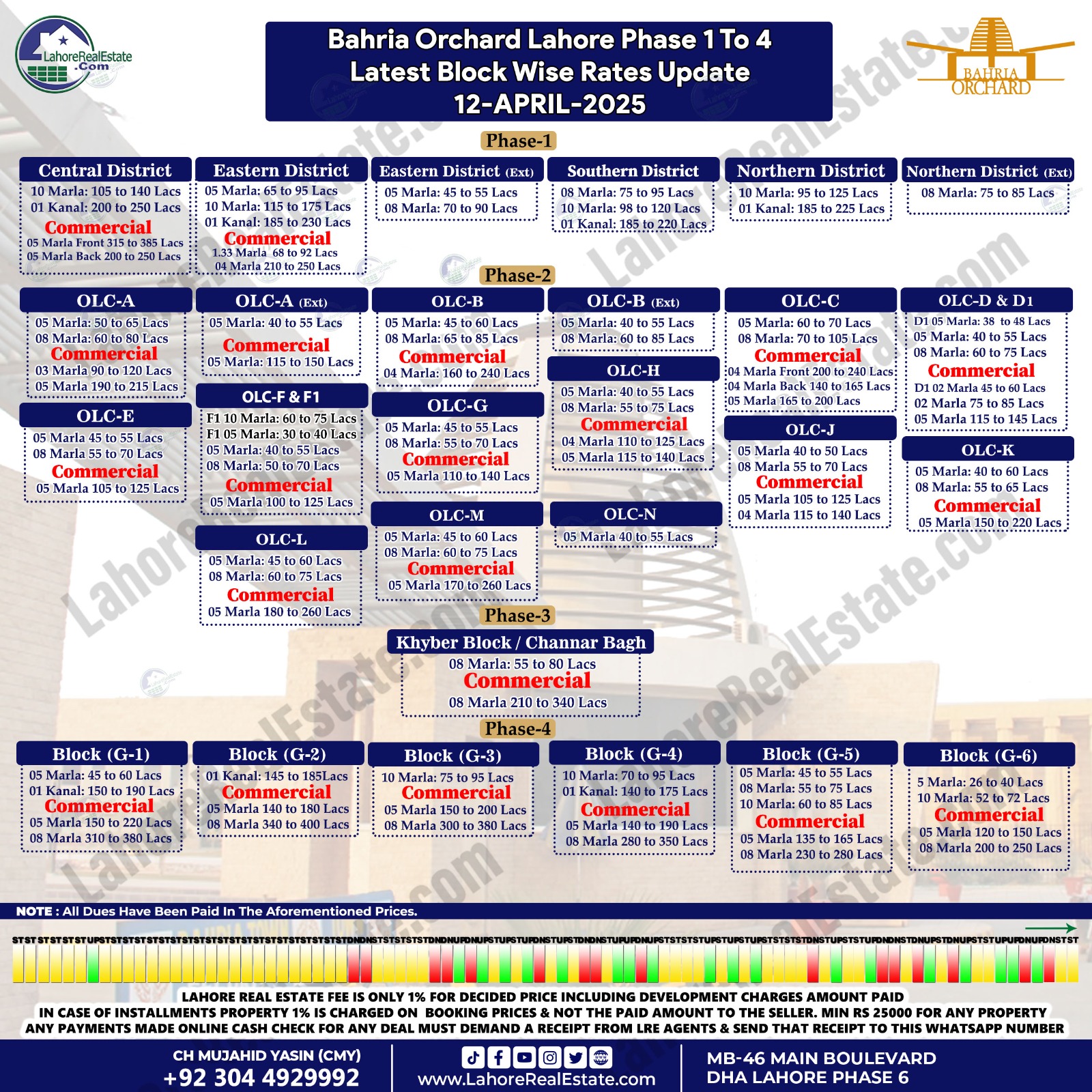 | Bahria Orchard Ph-2 | 4 Marla Blockwise Price | OLC-H-Comm - 4M@105-125 | Ch Mujahid Yasin +923224929992 Updated: 12-12-2025 |