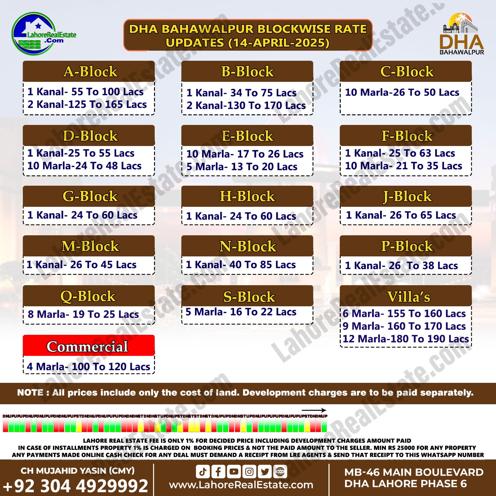 - Development Charges: Contact DHA Bahawalpur directly for current information or call Lahore Real Estate agents.