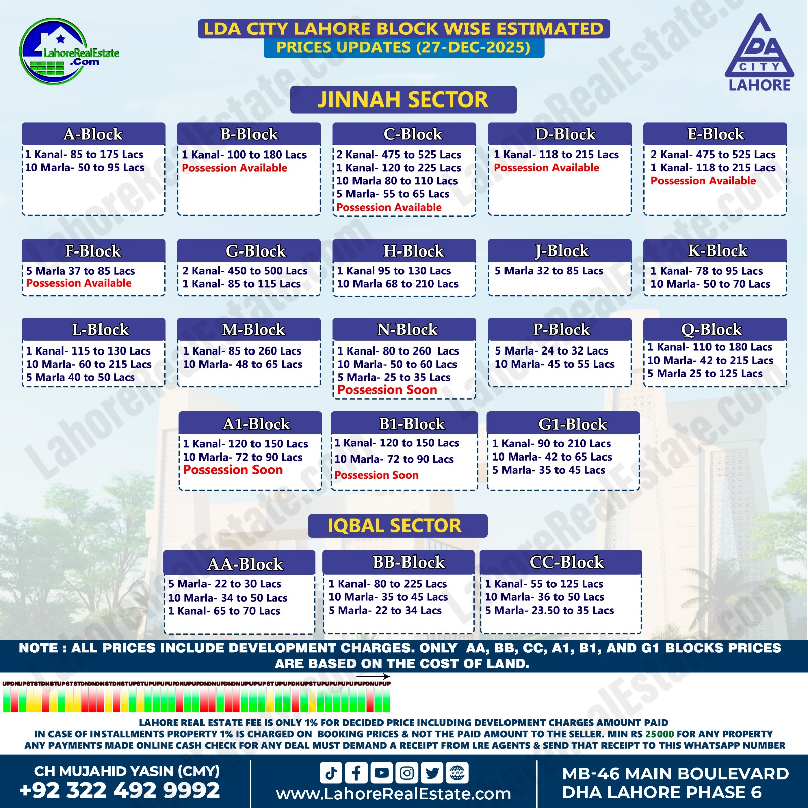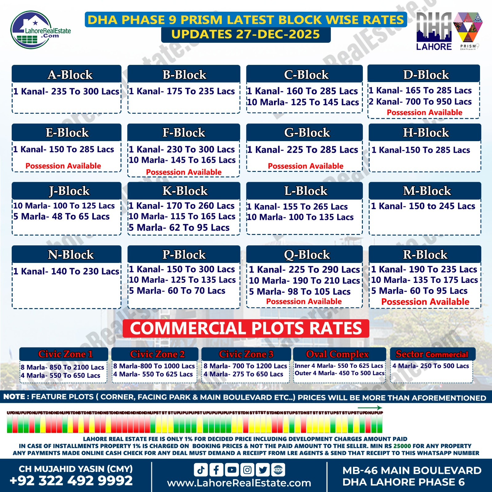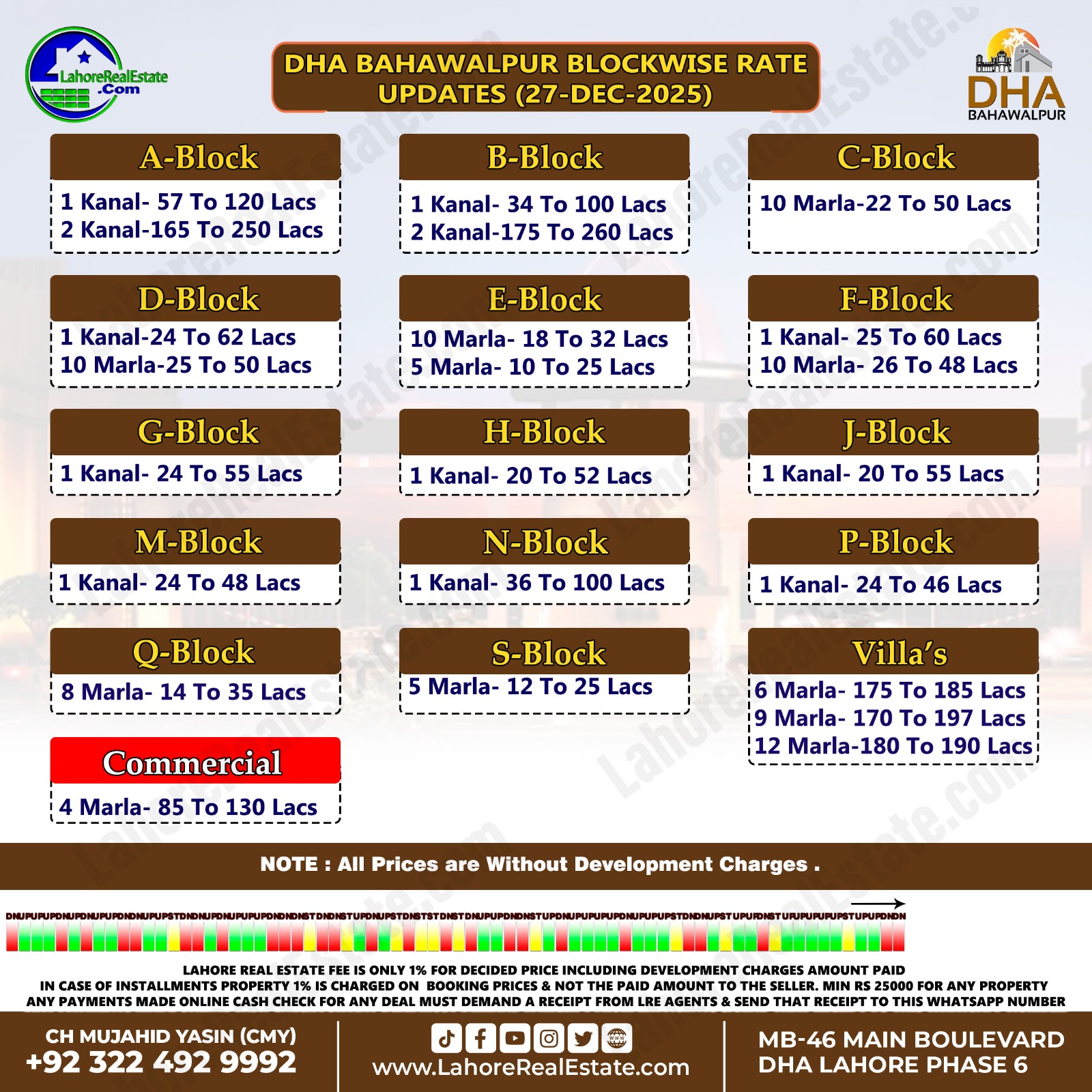Latest Blockwise Plot Prices in DHA Lahore & Other Societies – 14th January, 2026 Update