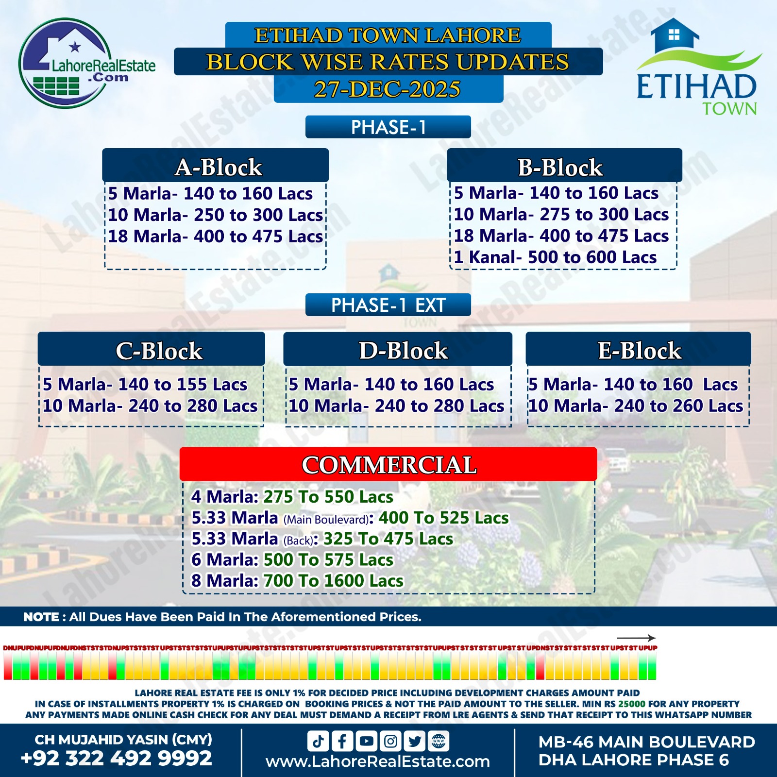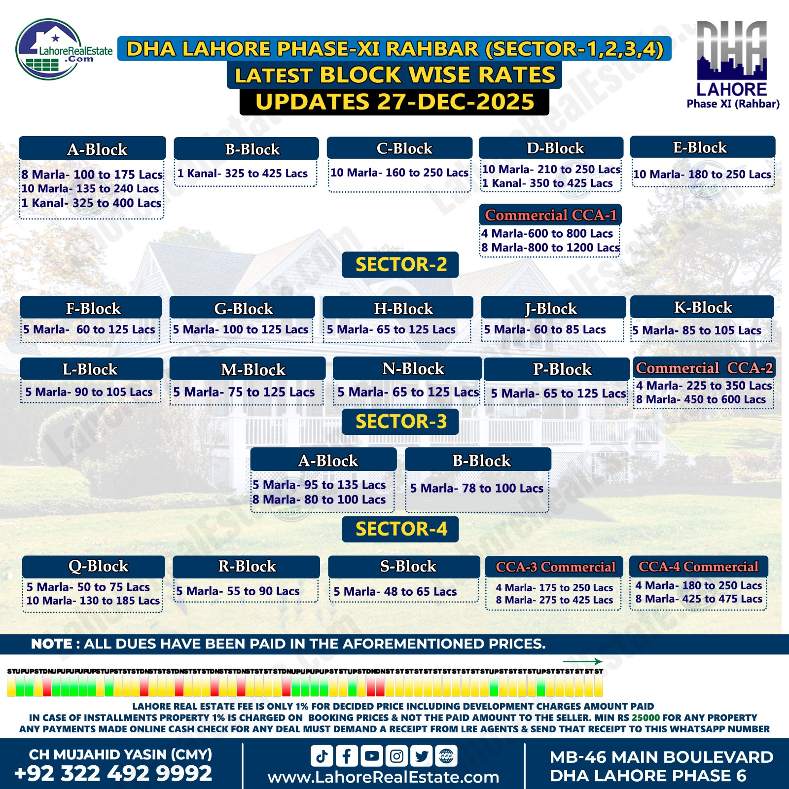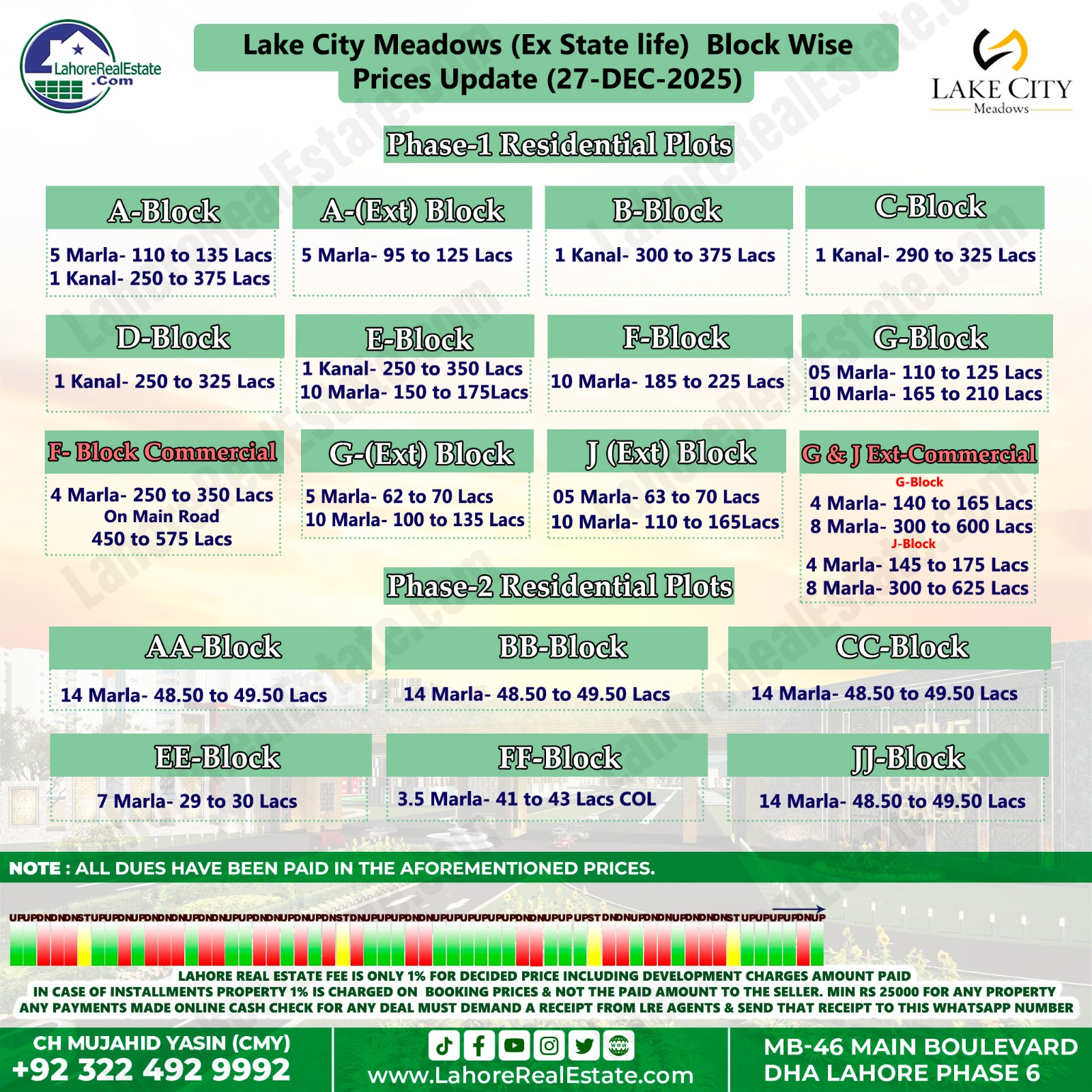 Latest Blockwise Plot Prices in DHA Lahore & Other Societies – 14th January, 2026 Update