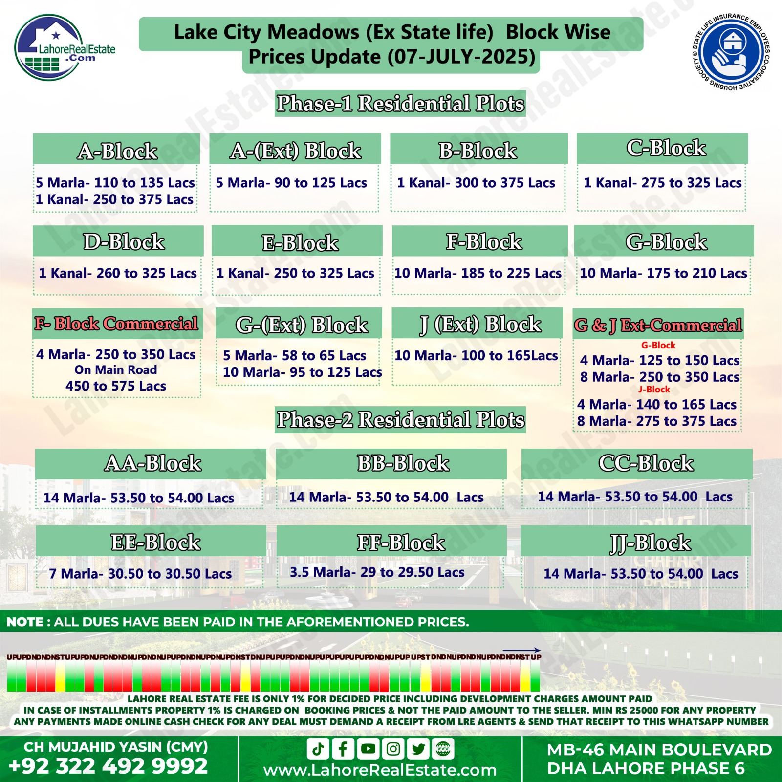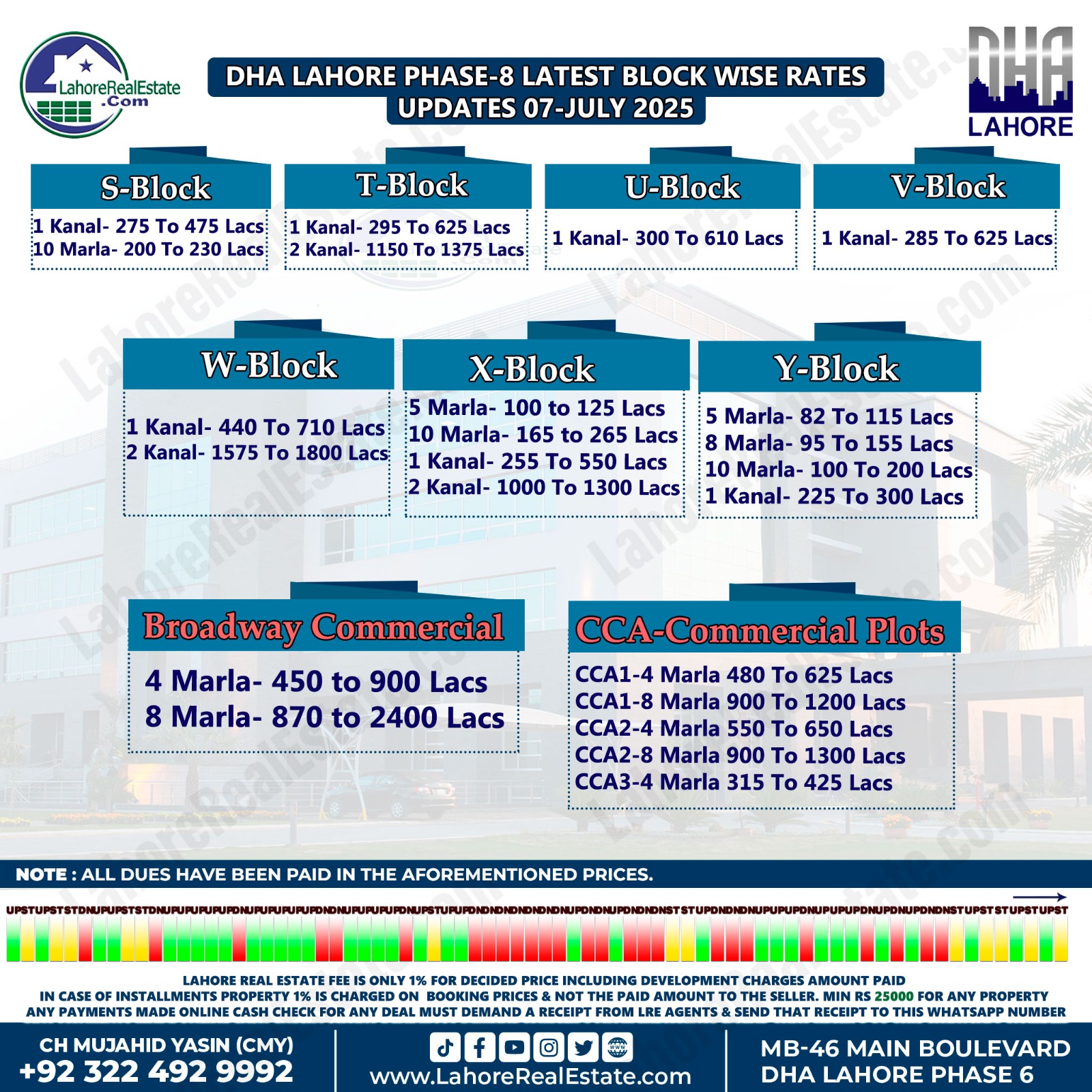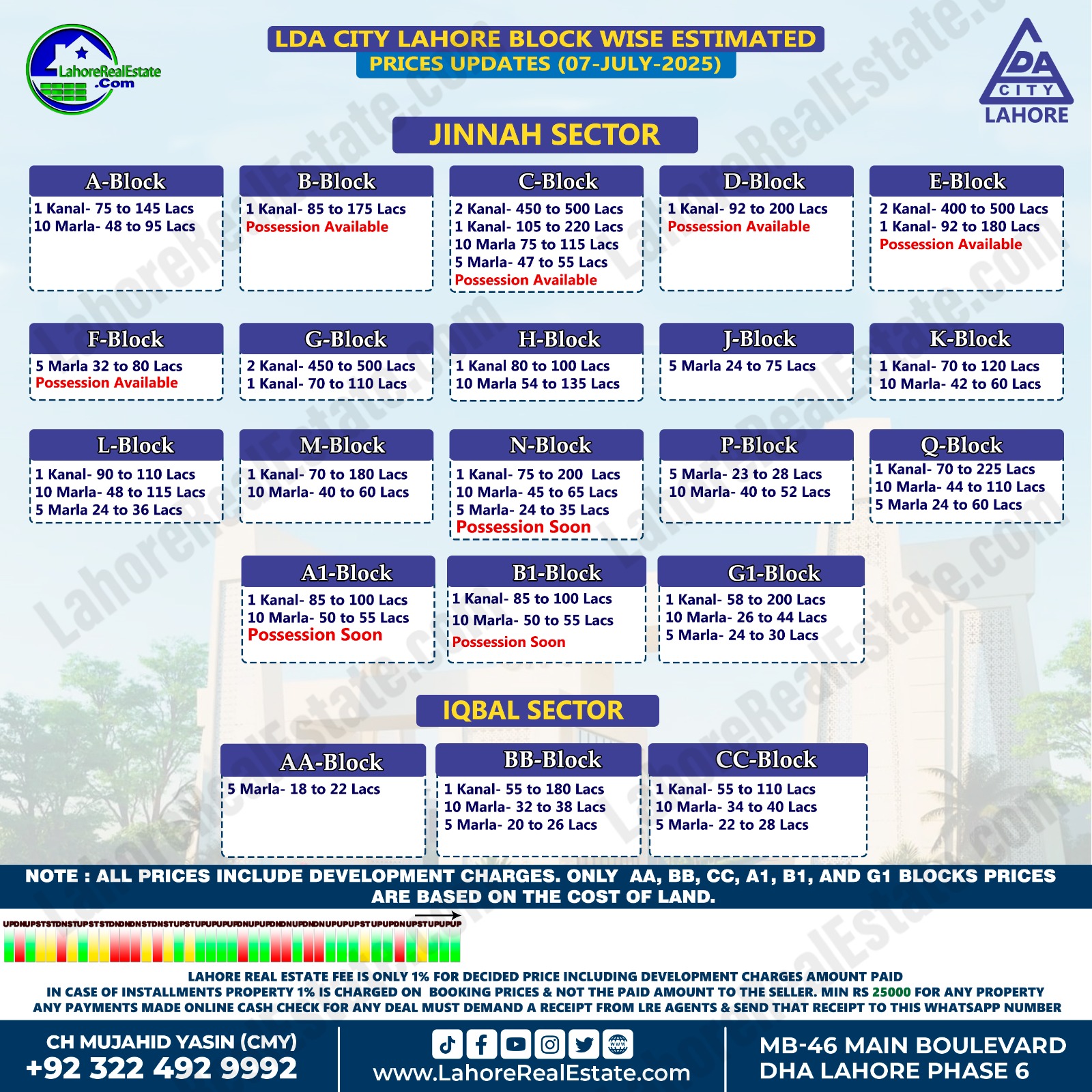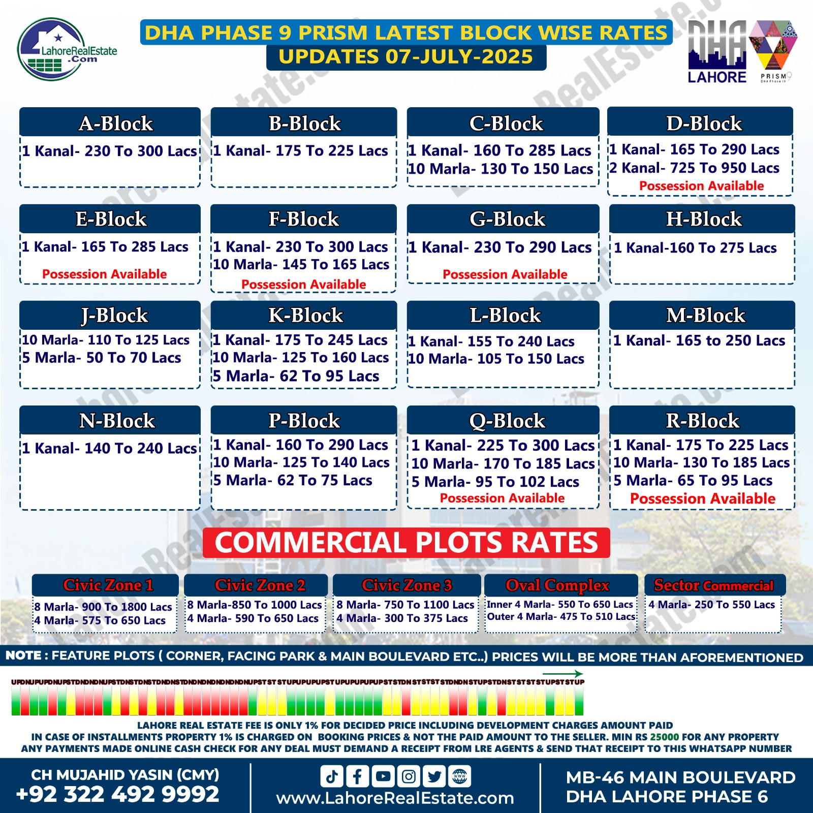Latest Blockwise Plot Prices in DHA Lahore & Other Societies – 9th July 2025 Update
