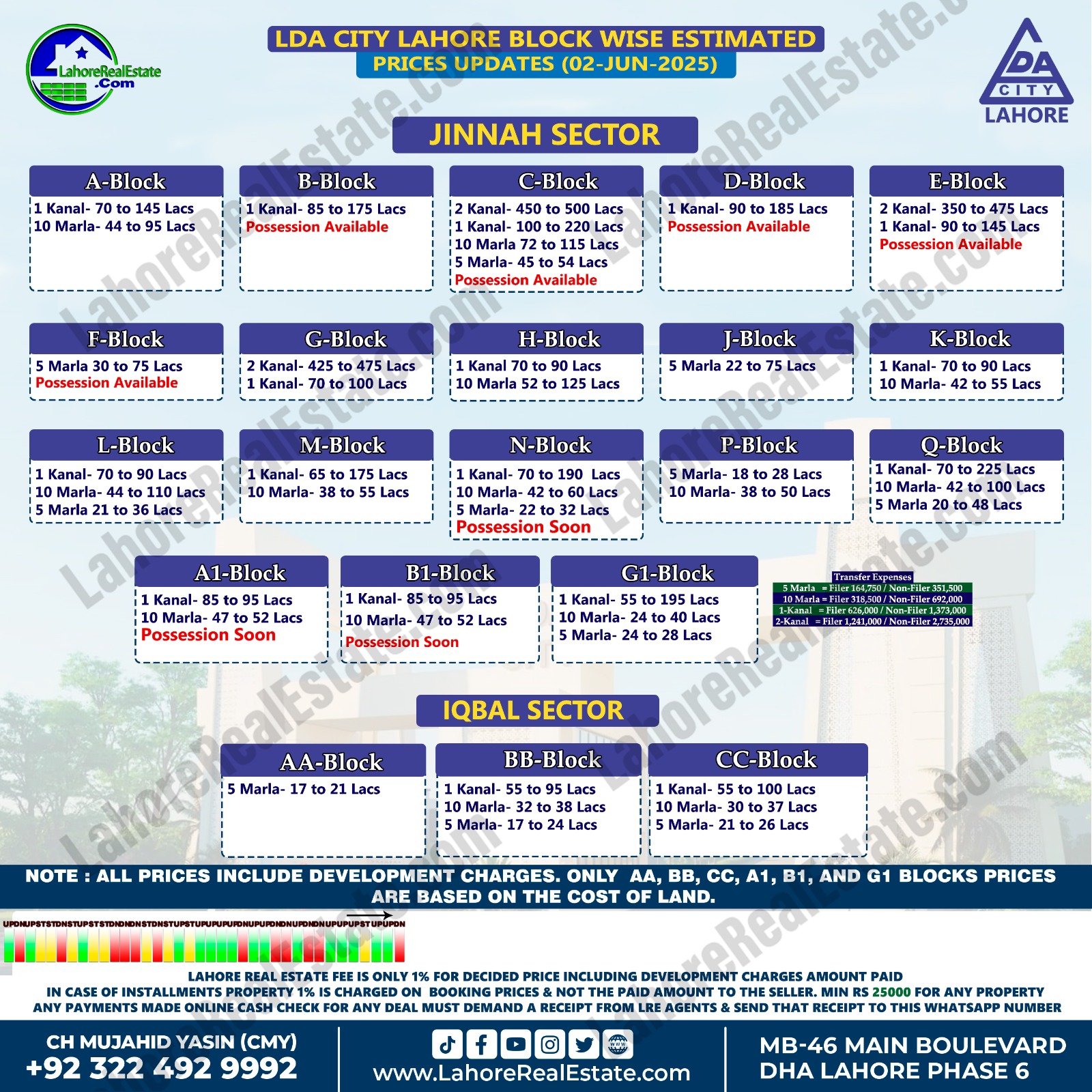 Latest Blockwise Plot Prices in DHA Lahore & Other Societies – 4th June 2025 Update