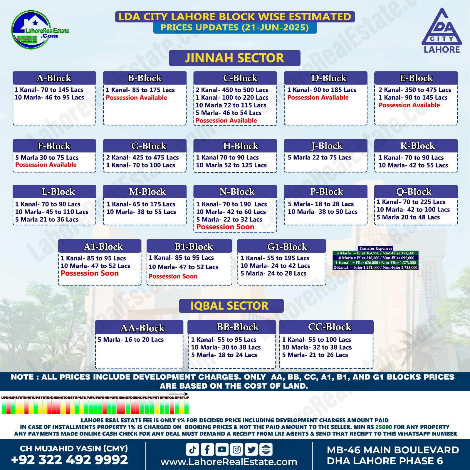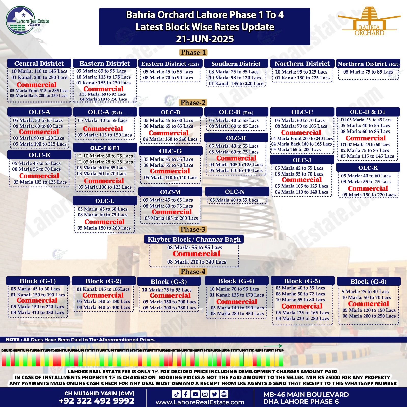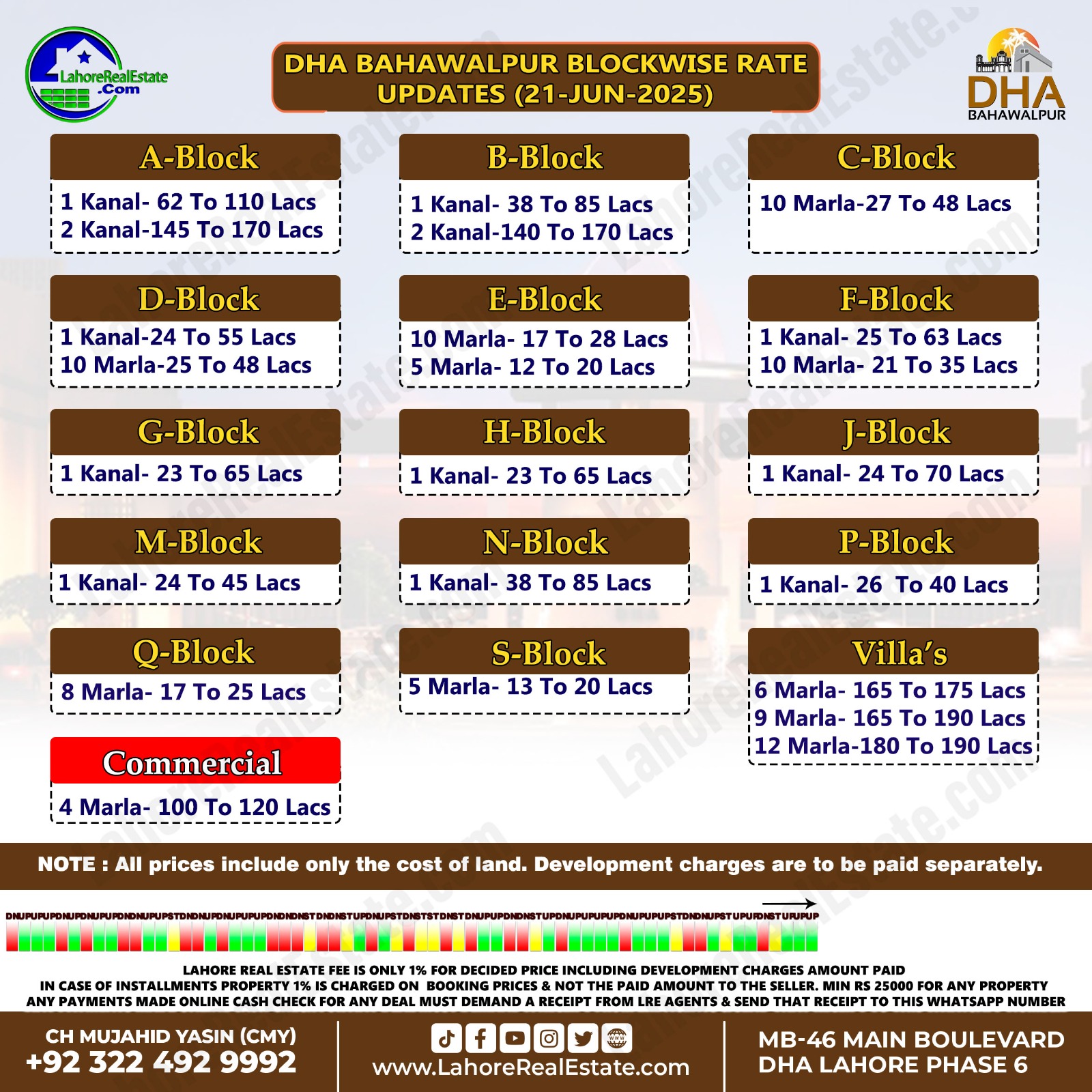 Latest Blockwise Plot Prices in DHA Lahore & Other Societies – 24th June 2025 Update
