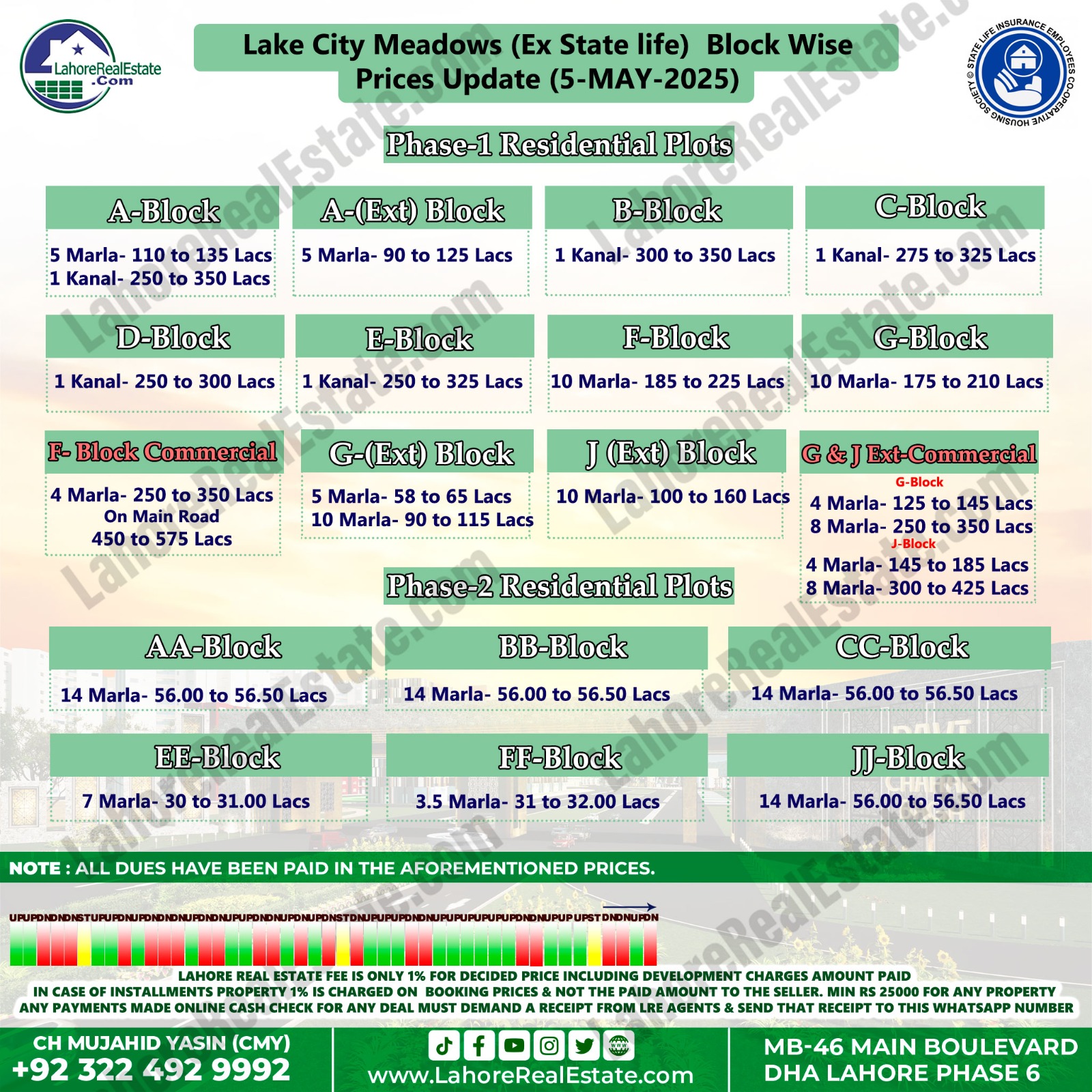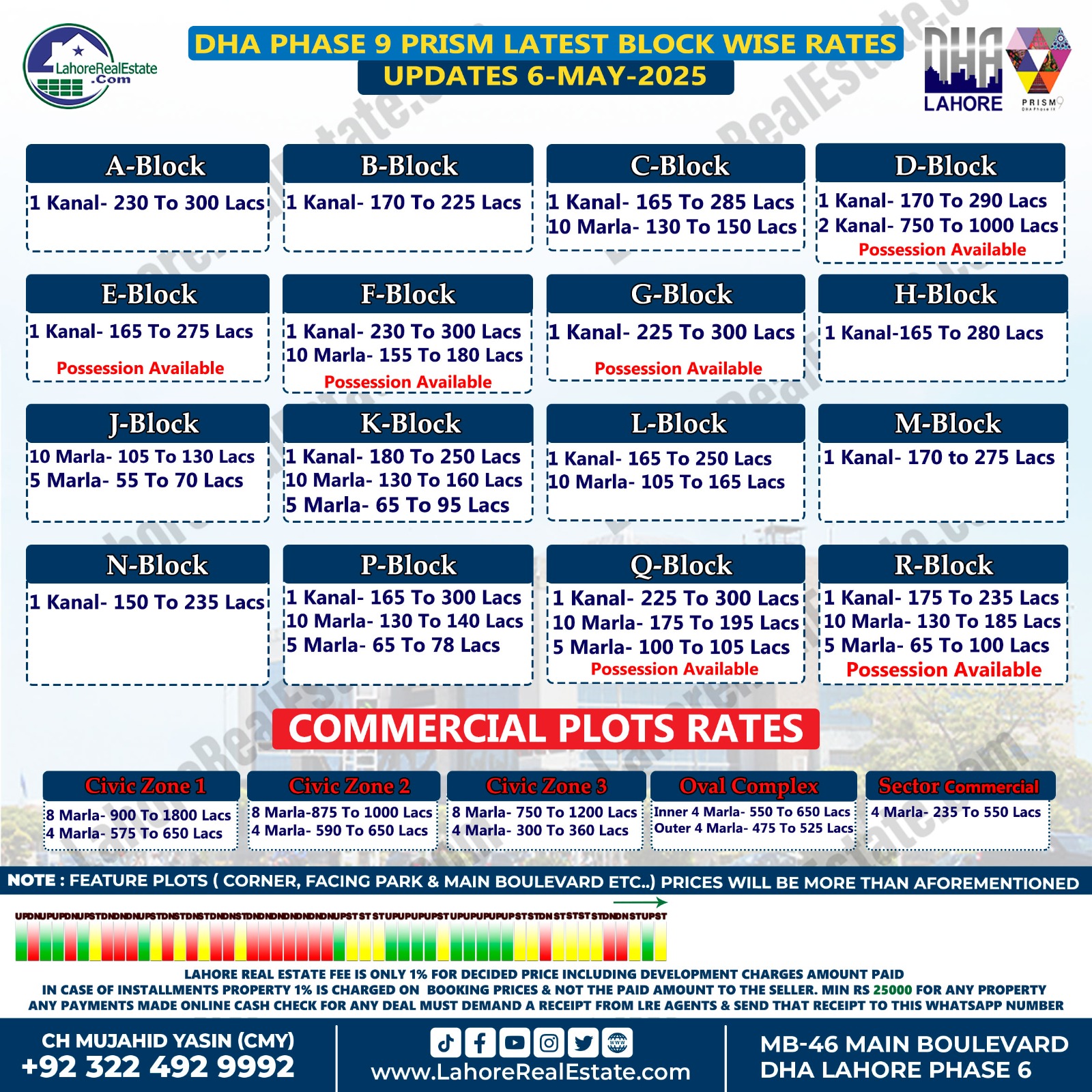 Latest Blockwise Plot Prices in DHA Lahore & Other Societies – 7th May 2025 Update