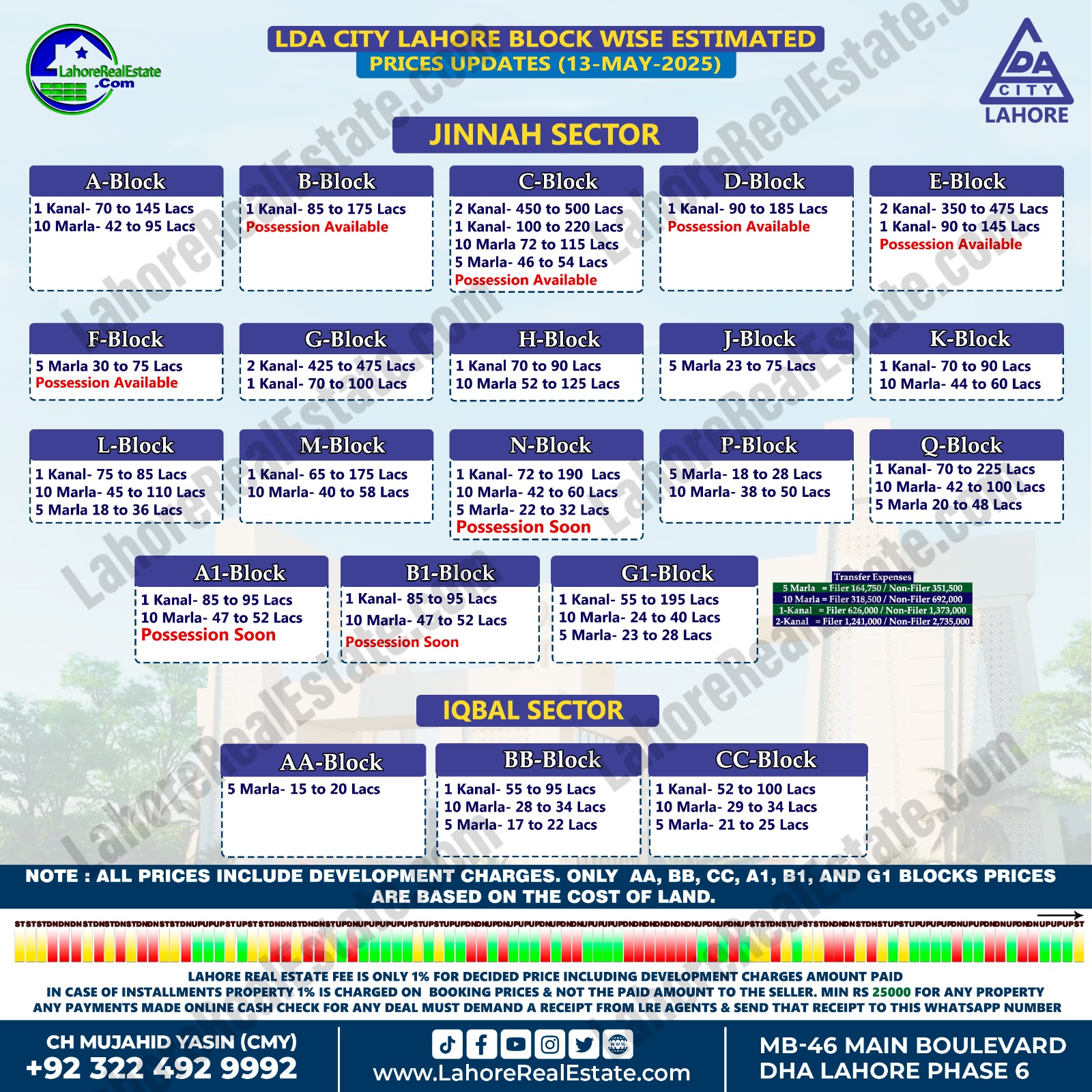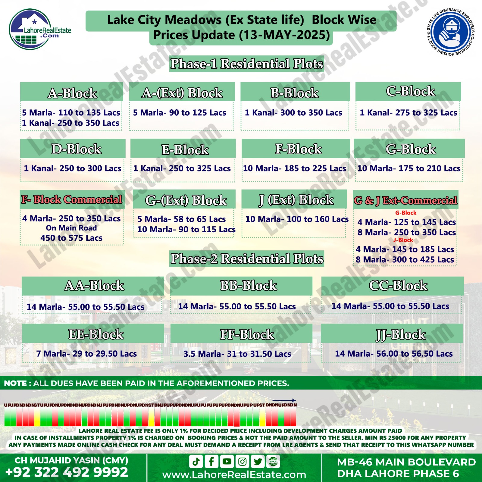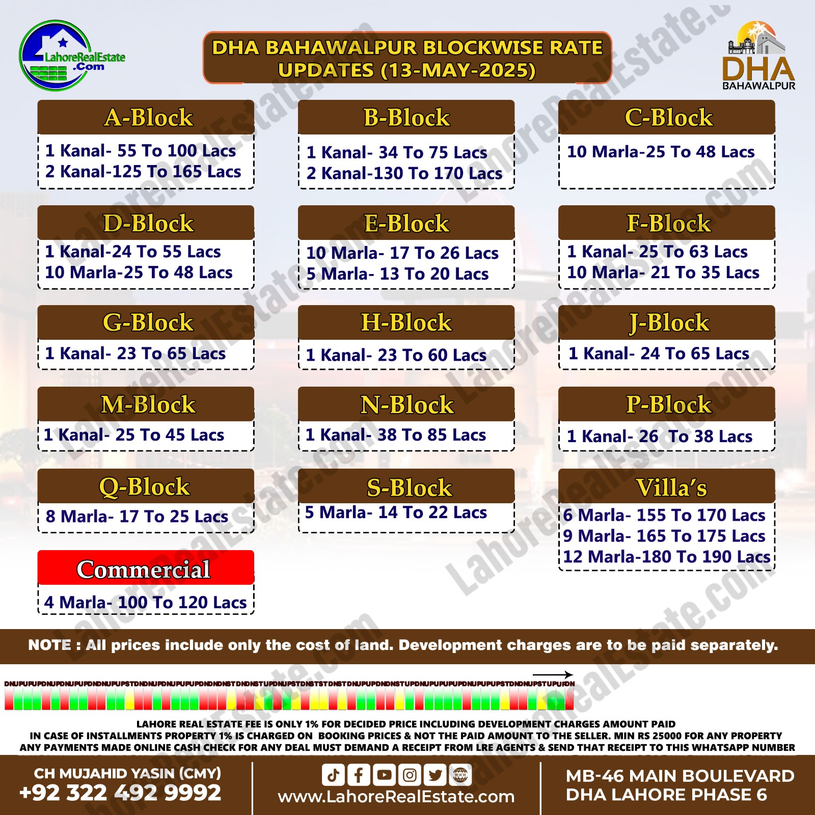 Latest Blockwise Plot Prices in DHA Lahore & Other Societies – 14th May 2025 Update