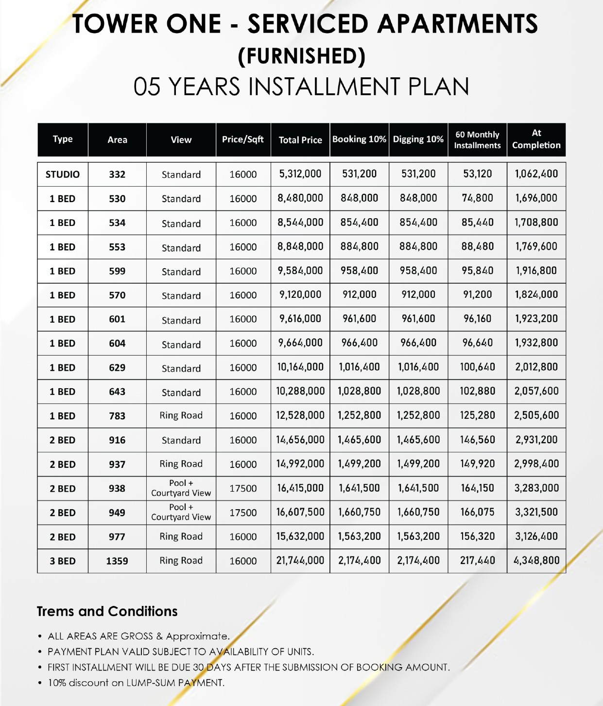 - Starting Price: Rs. 16,000 per square foot for fully furnished apartments.