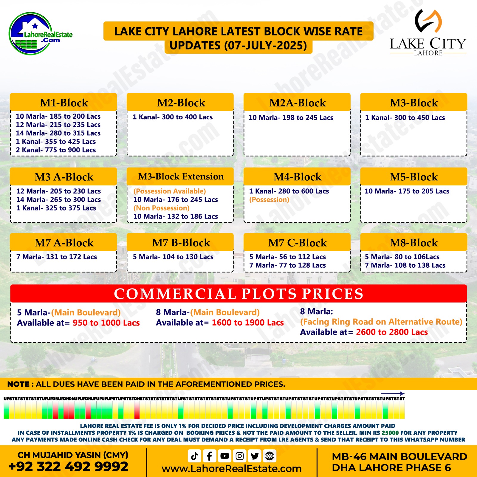 | Lake City | 7 Marla Blockwise Price | M8 - 7M@130-160 | Ch Mujahid Yasin +923224929992 Updated: 13-12-2025 |