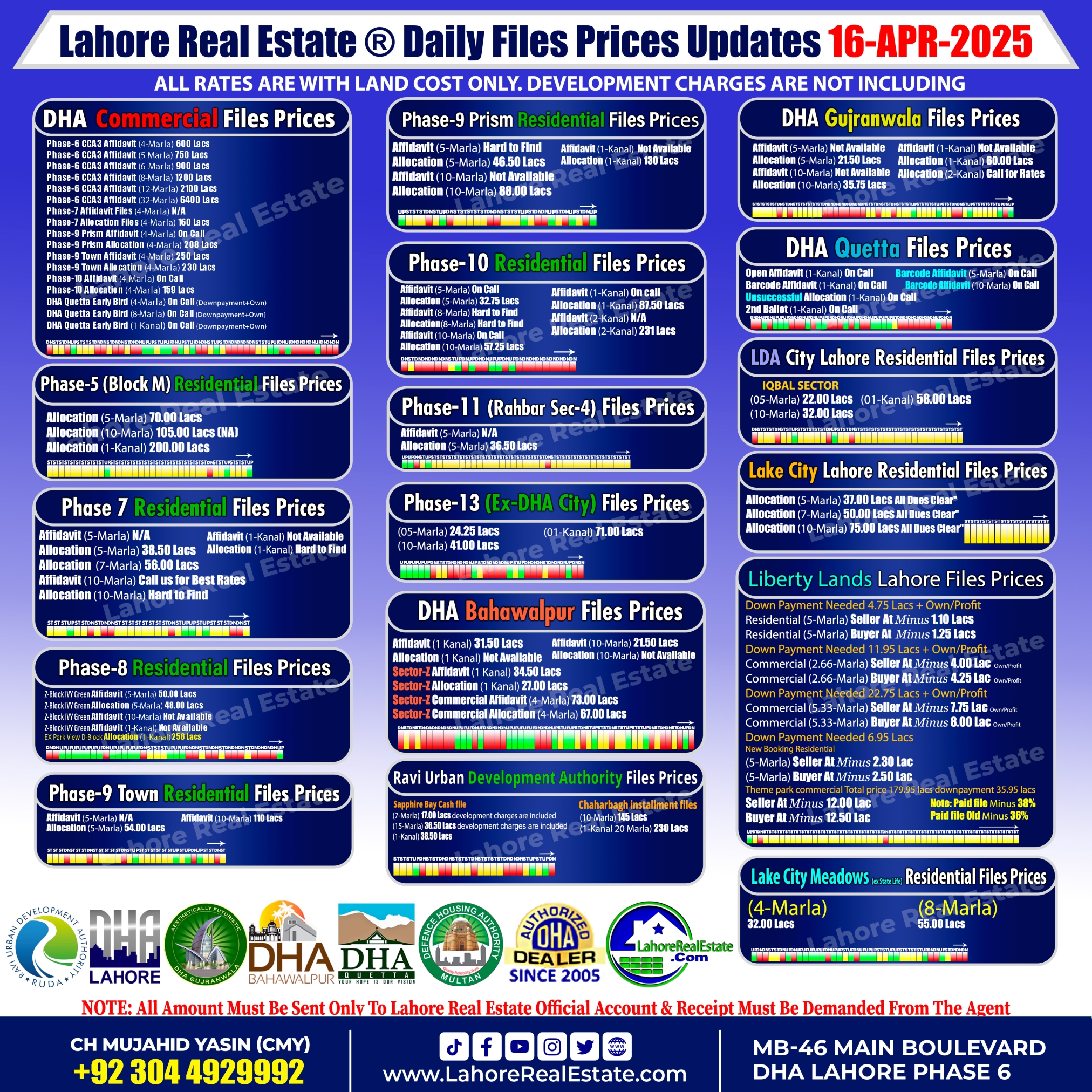 Disclaimer: Market info as of April 16, 2025. Rates may change. Please contact Lahore Real Estate ® for the latest updates and advice.