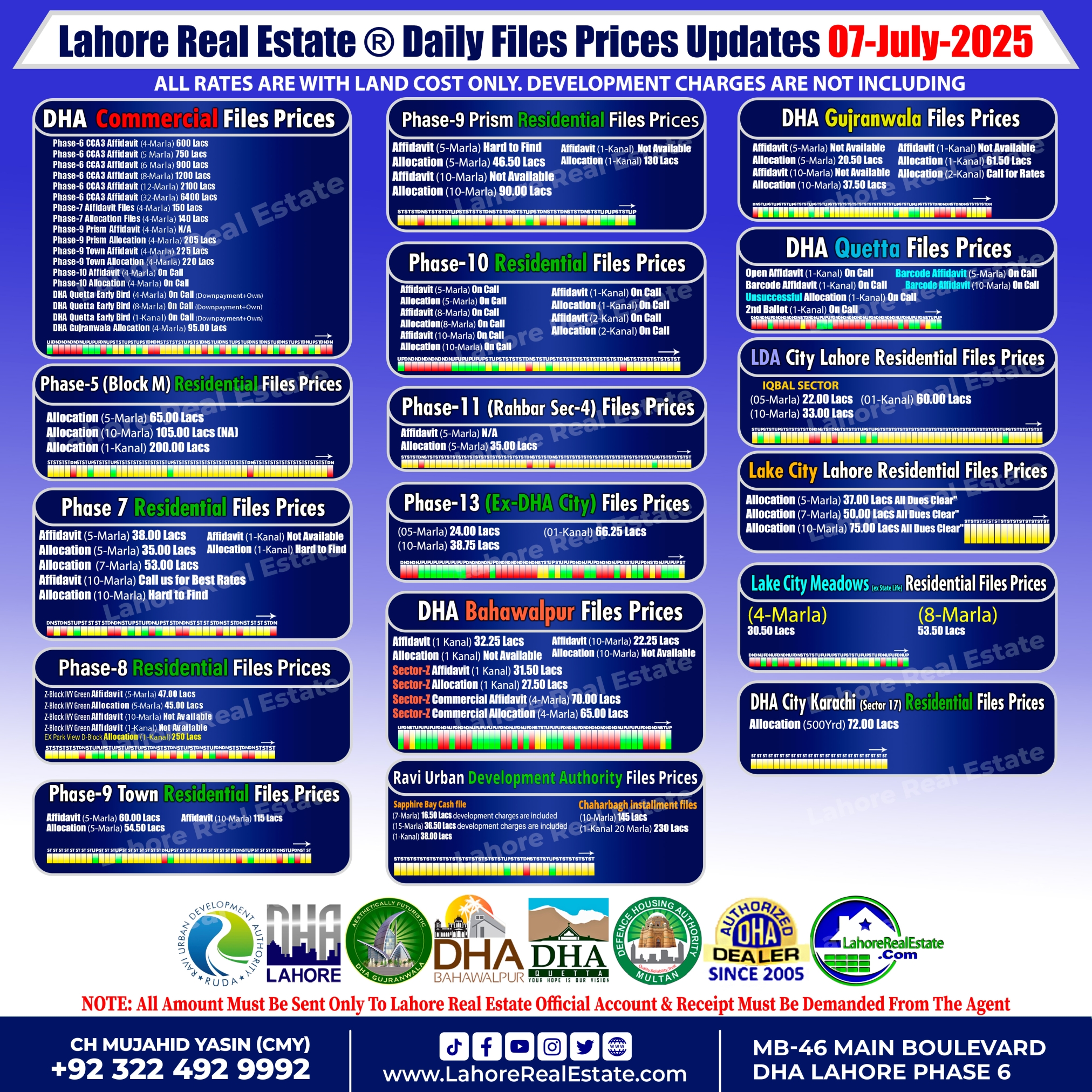 Disclaimer: This market update is accurate as of July 07, 2025. File rates may vary. For the latest updates and investment advice, consult Lahore Real Estate ®.
