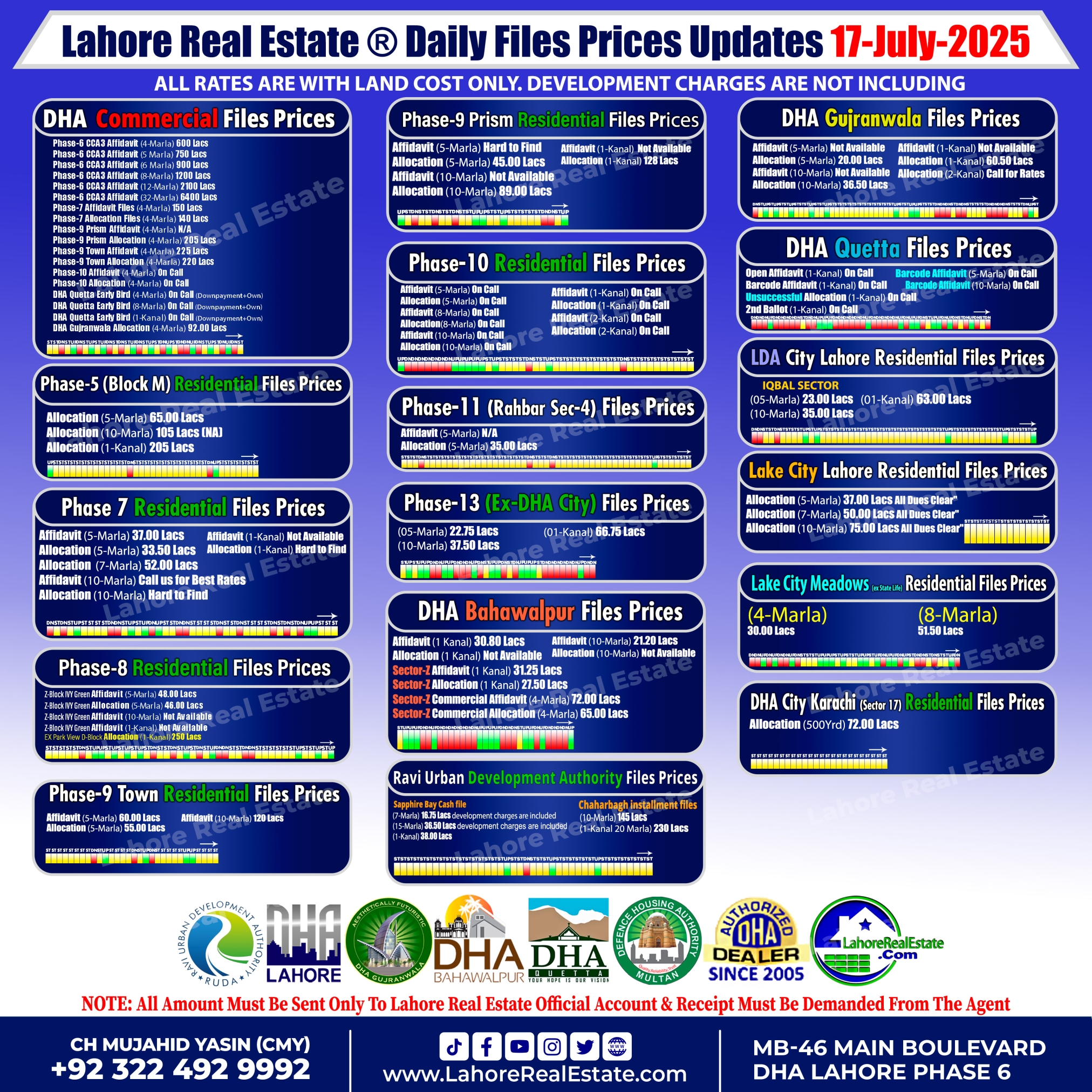 Disclaimer: Market data is current as of July 17, 2025. File rates may vary. Please consult Lahore Real Estate ® for the latest updates and expert advice tailored to your investment goals.