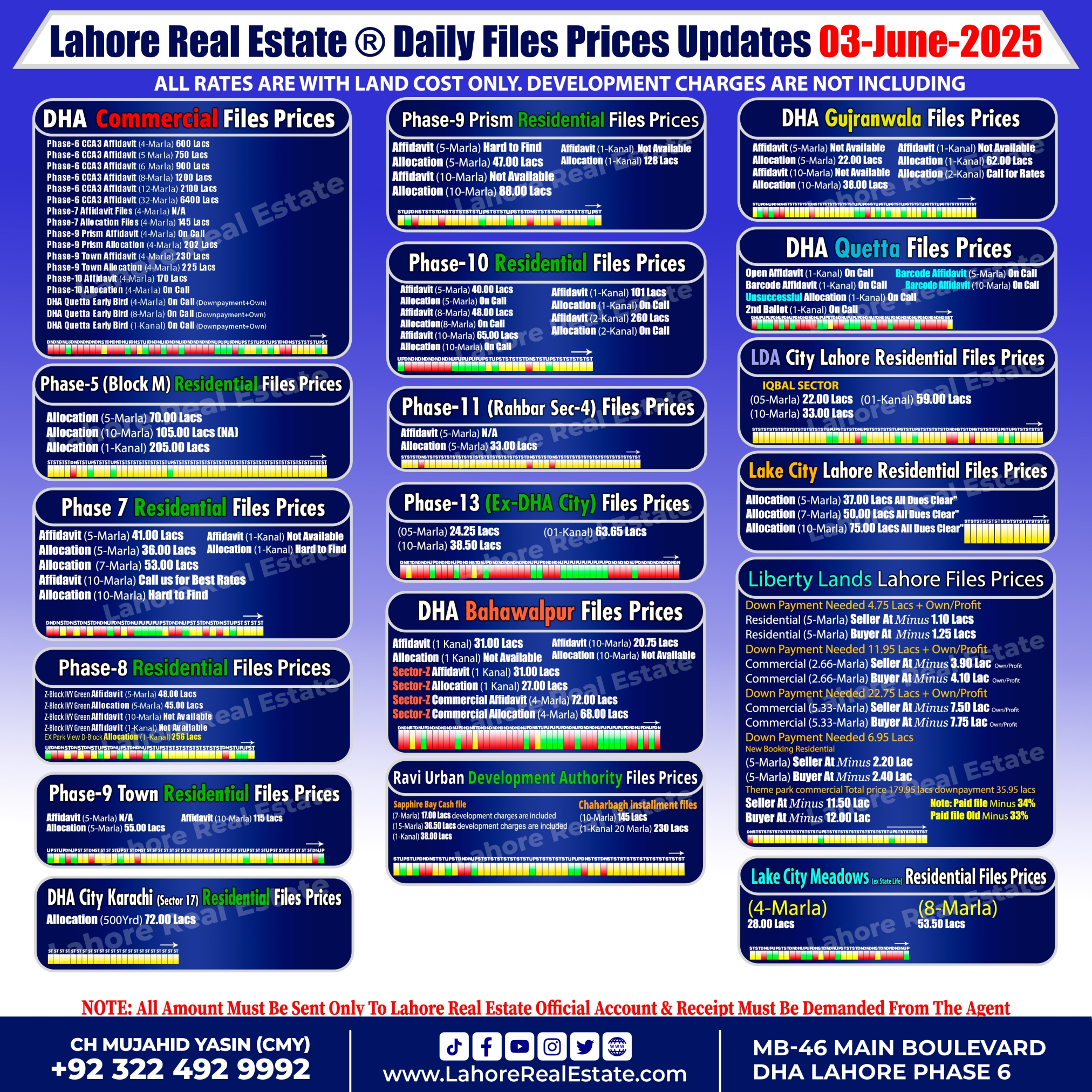 Disclaimer: Rates as of June 3, 2025. Prices may change — always confirm with Lahore Real Estate ® for the latest updates.