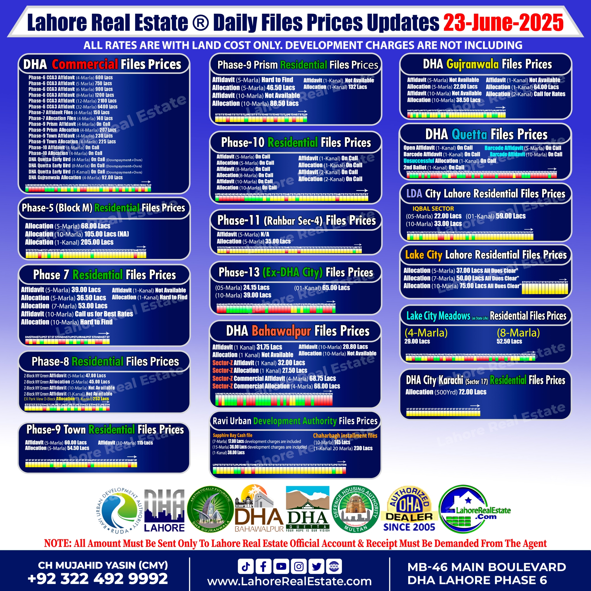 Discover the most current DHA Lahore, LDA City, Lake City, RUDA & More Societies file rates for June 23, 2025. Get expert analysis on the thriving real estate market, emerging investment opportunities, and future trends. Stay ahead with detailed updates for buyers and investors.