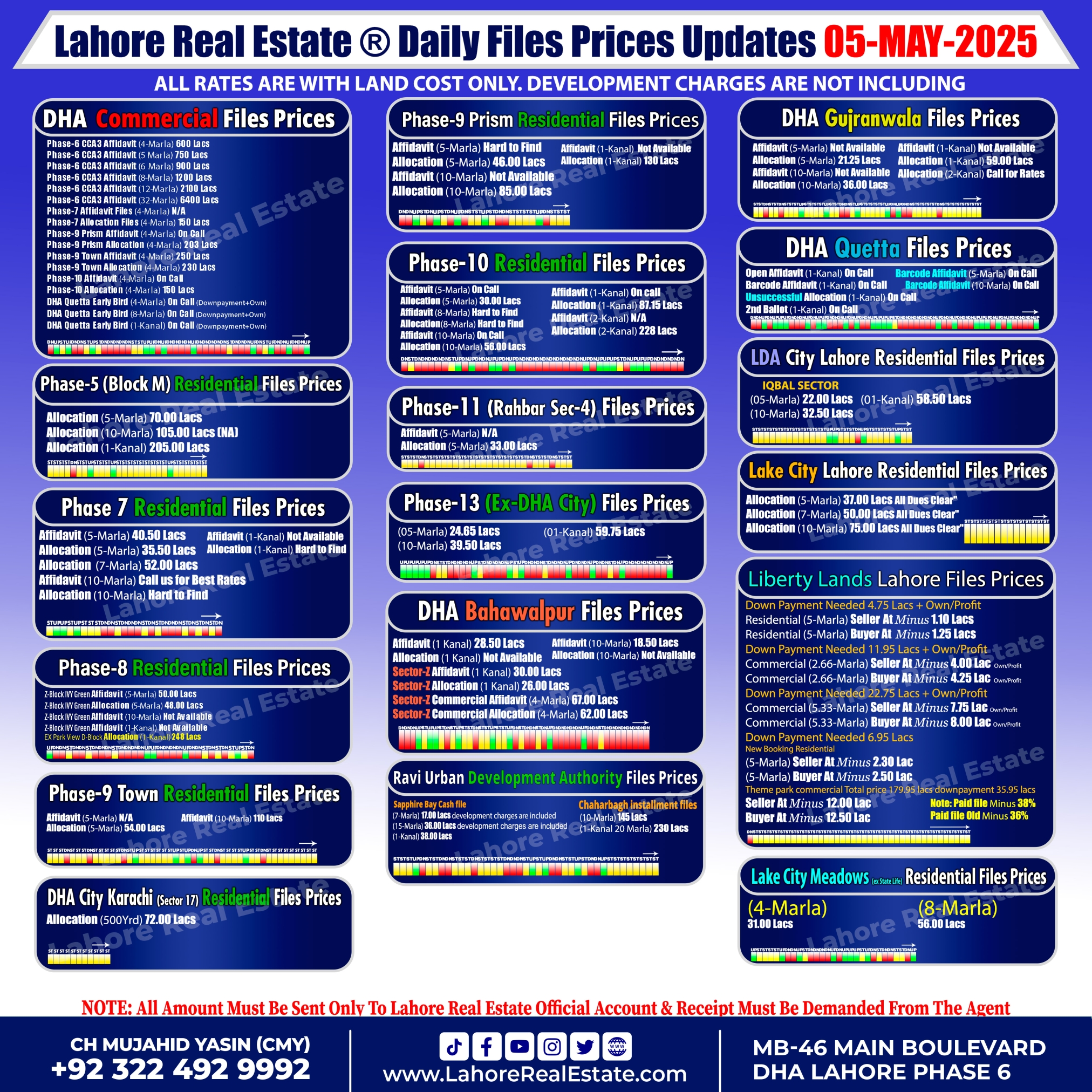 Disclaimer: Market status as of May 5, 2025. Rates may vary. Please consult Lahore Real Estate ® for the latest updates and expert advice.