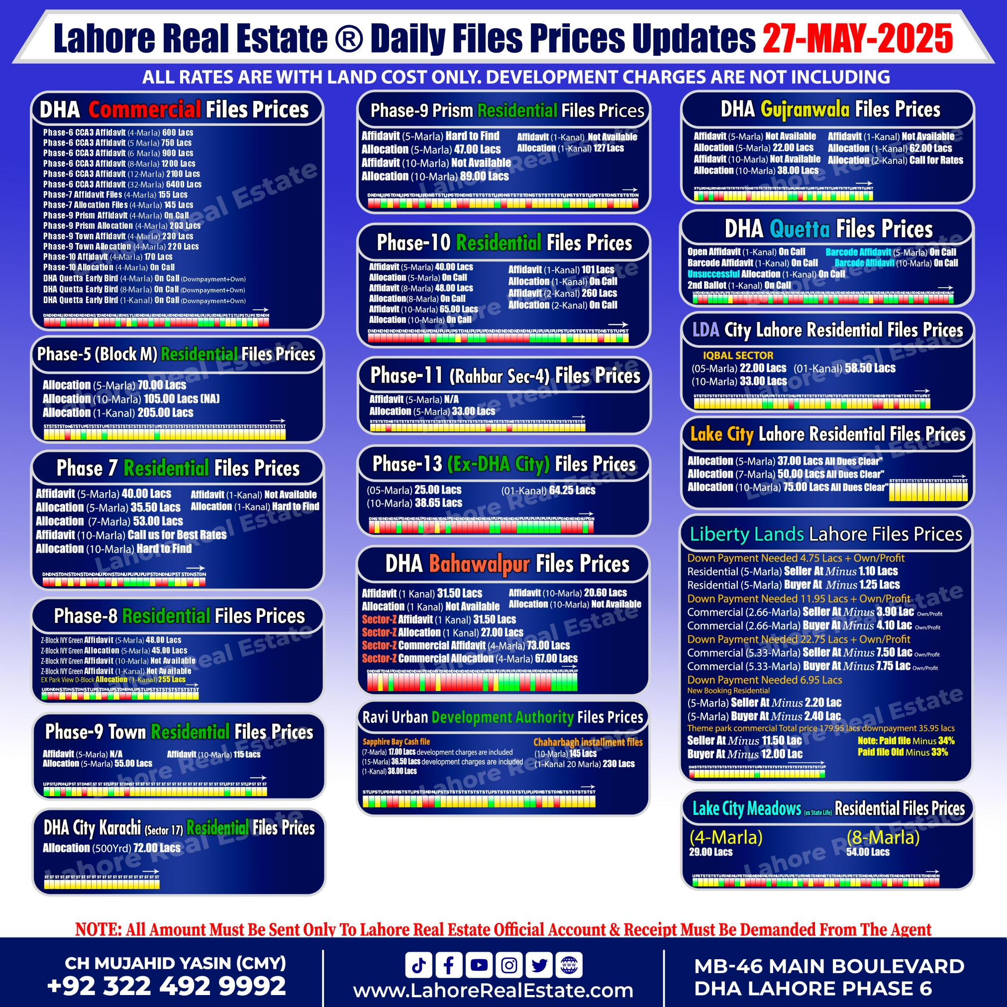 Disclaimer: Market details as of May 27, 2025. File rates may vary. Please consult Lahore Real Estate ® for the latest updates.