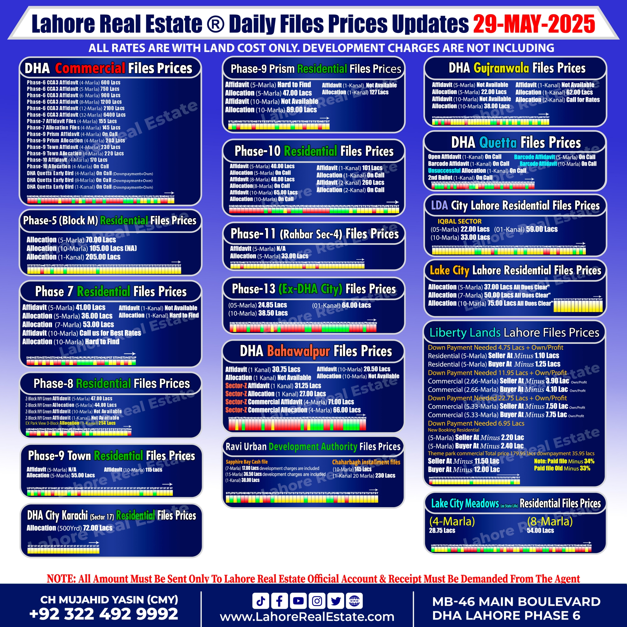 Disclaimer: Market details are current as of May 29, 2025. Rates may vary. Contact Lahore Real Estate ® for the latest updates and advice.