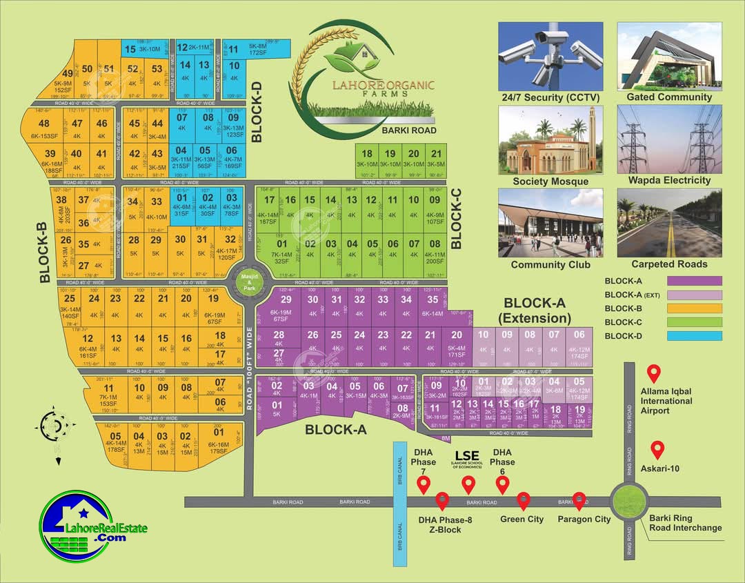 The entrance to the community is directly from the 100 feet wide Main Barki Road, ensuring seamless accessibility for residents and visitors alike. With the road expansion underway and infrastructure development progressing rapidly, this location offers exceptional growth prospects for early investors and homeowners.