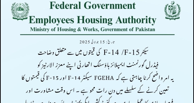 FGEHA Latest Update: Sector F-14 and F-15 Pricing Clarification (July 15, 2025) In an important clarification issued by the Federal Government Employees Housing Authority (FGEHA), confusion surrounding the pricing of Sector F-14 and F-15 has been addressed. The housing authority has clearly stated that the price finalization process for these sectors is currently underway and […]