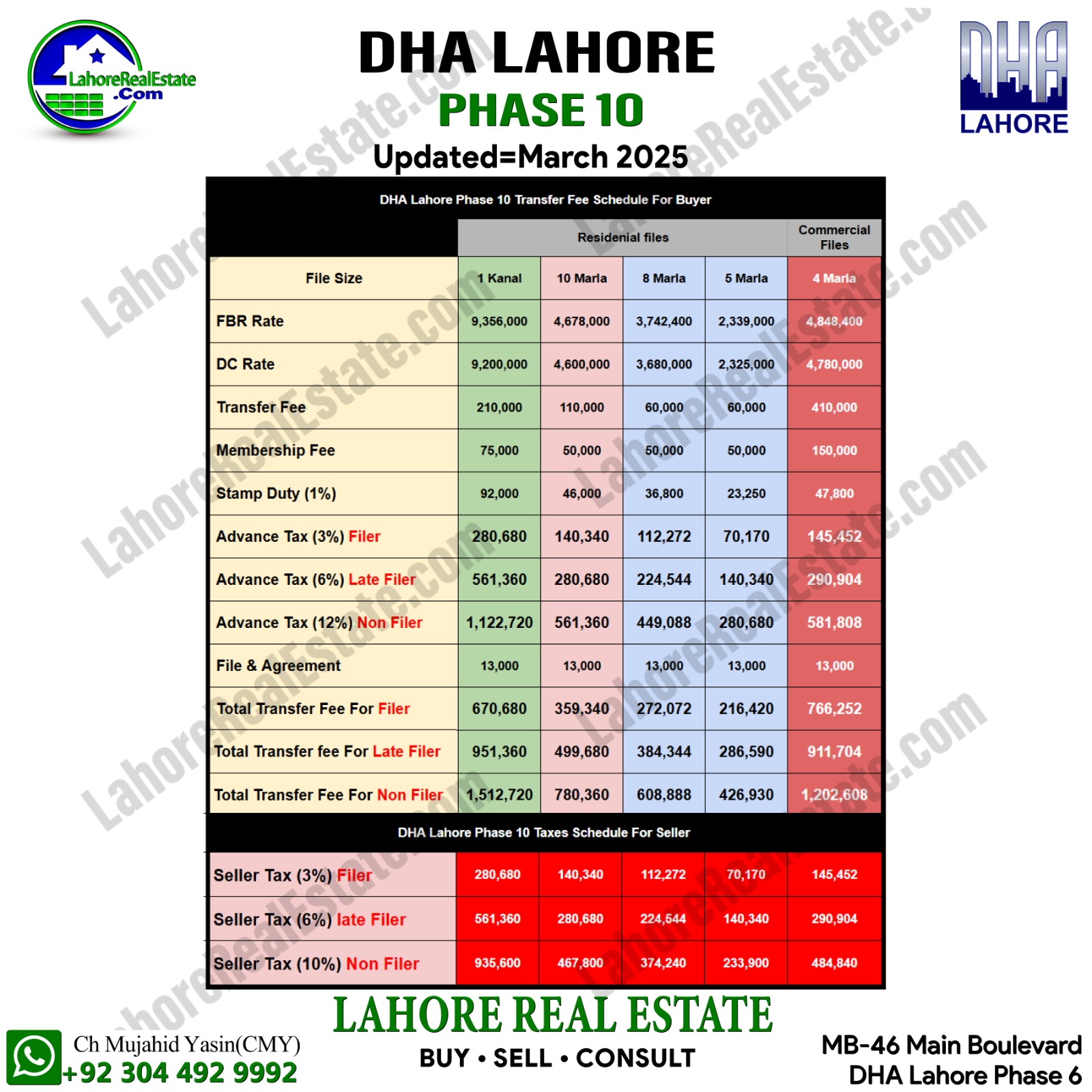 DHA Lahore is a prestigious housing society with several phases. The transfer fees for DHA Lahore Phase 5, 6, 7, 8, 9, and Phase 9 Prism are subject to the size and type of the property. The same applies to DHA Multan, Bahawalpur, Gujranwala, and Quetta.