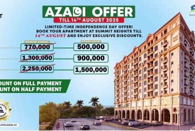 - Sector A: Pre-launching plots (PKR 19 lacs) now available at PKR 113k – 130k; Second booking plots (PKR 22.80 lacs) at PKR 900k – 1 million